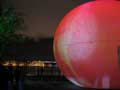 Шар и полусфера освещены снаружи и изнутри концертными световыми приборами.